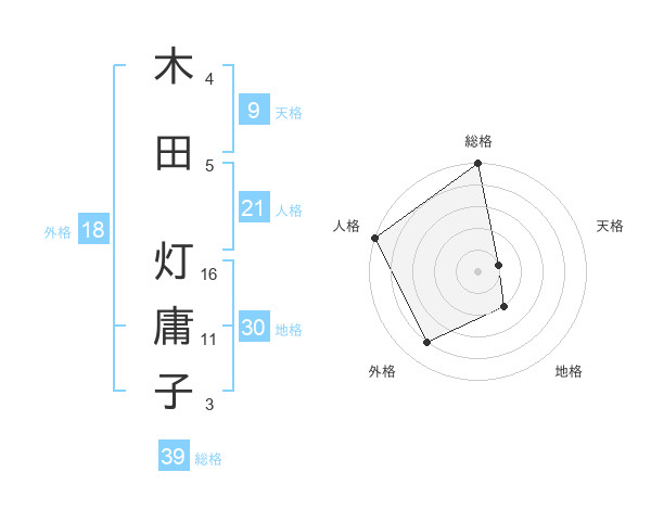 木田 灯庸子さんの総格は39画の5点!