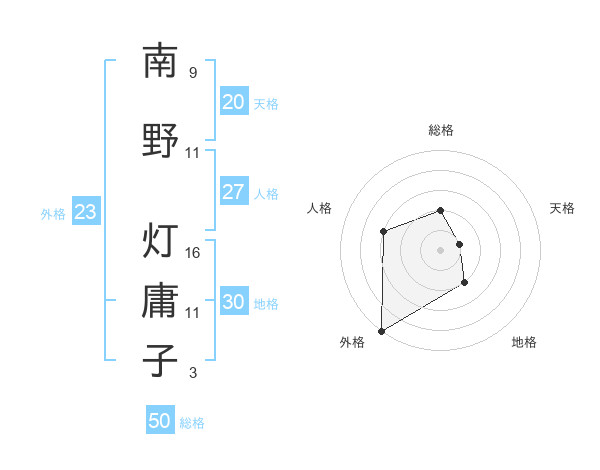 南野 灯庸子さんを姓名の画数から五運を鑑定