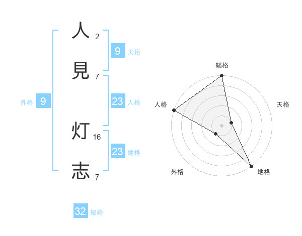 人見 灯志さんの総格は32画の5点!