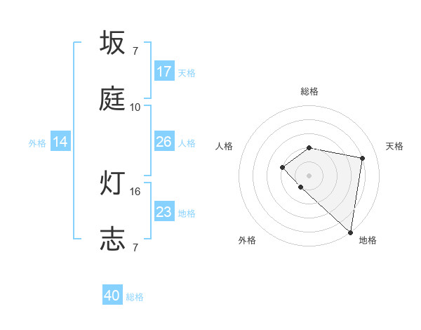 坂庭 灯志さんを姓名の画数から五運を鑑定