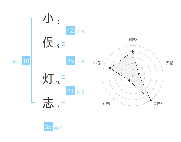小俣 灯志さんを姓名の画数から五運を鑑定