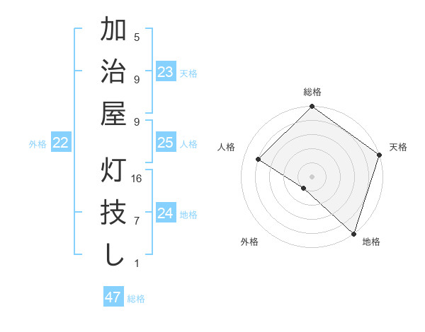 加治屋 灯技しさんの総格は47画の5点