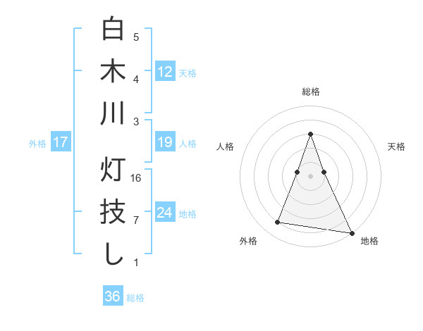白木川 灯技しさんを姓名の画数から五運を鑑定