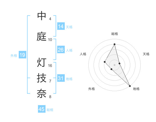 中庭 灯技奈さんの総格は45画の4点!