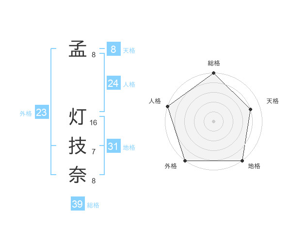 孟 灯技奈さんを姓名の画数から五運を鑑定