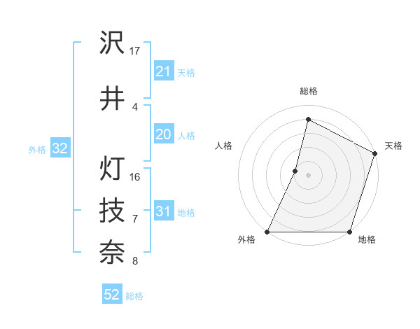 沢井 灯技奈さんの総格は52画の4点!