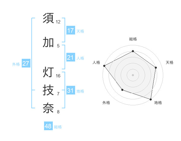 須加 灯技奈さんを姓名の画数から五運を鑑定