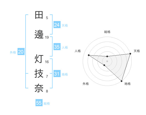 田邊 灯技奈さんを姓名の画数から五運を鑑定