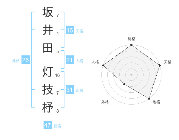 坂井田 灯技杼さんを姓名の画数から五運を鑑定