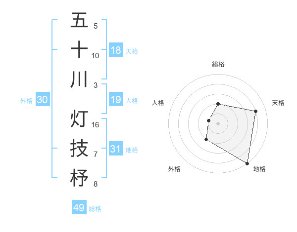 五十川 灯技杼さんを姓名の画数から五運を鑑定