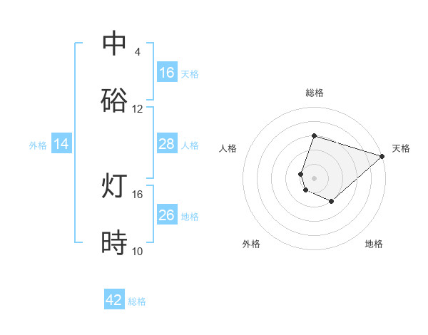 中硲 灯時さんを姓名の画数から五運を鑑定