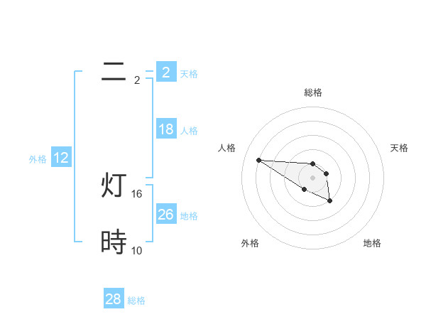 二 灯時さんの地格は26画の2点!