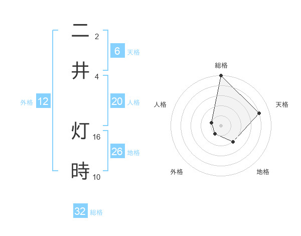 二井 灯時さんの総格は32画の5点!