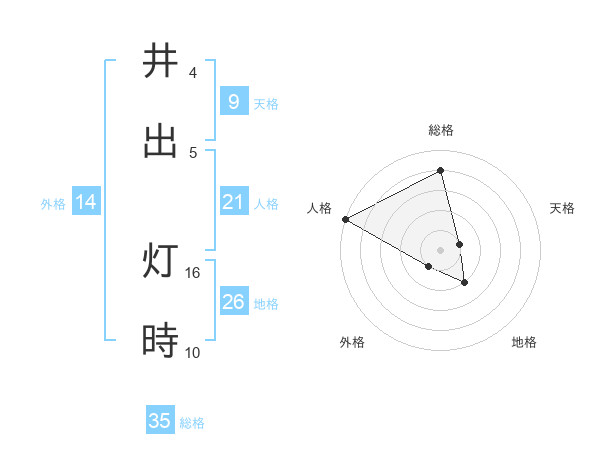 井出 灯時さんの総格は35画の4点!