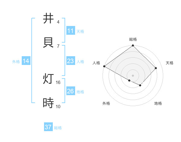 井貝 灯時さんを姓名の画数から五運を鑑定