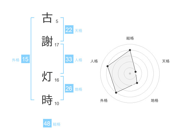 古謝 灯時さんを姓名の画数から五運を鑑定