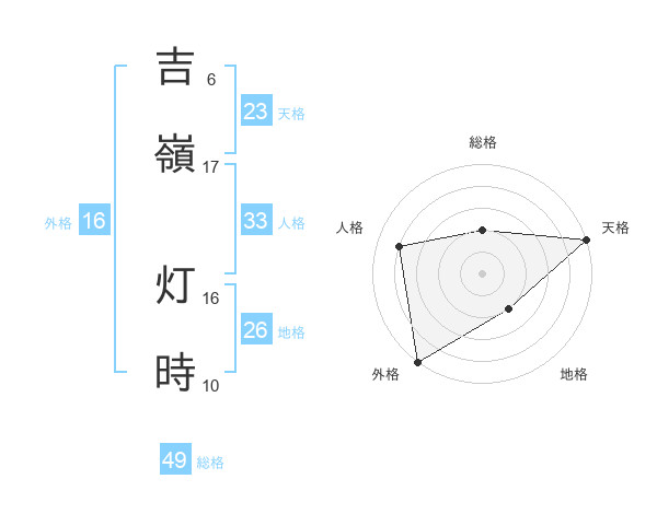 吉嶺 灯時さんの総格は49画の2点!