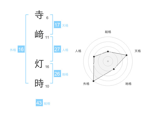 寺﨑 灯時さんを姓名の画数から五運を鑑定