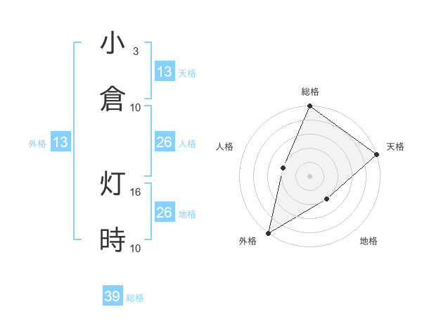 小倉 灯時さんの総格は39画の5点!