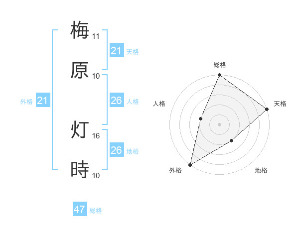 梅原 灯時さんを姓名の画数から五運を鑑定