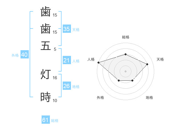 歯歯五 灯時さんの総格は61画の3点!