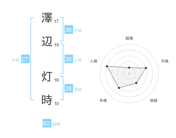 澤辺 灯時さんの総格は62画の1点!