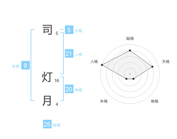 司 灯月さんの総格は25画の4点!