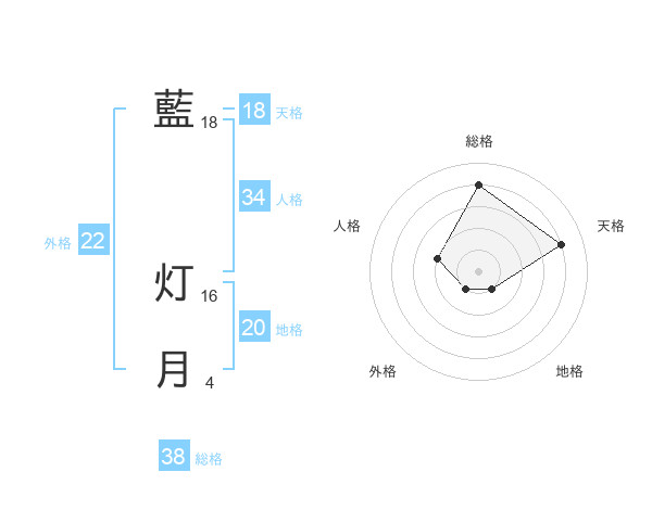 藍 灯月さんの総格は38画の4点!