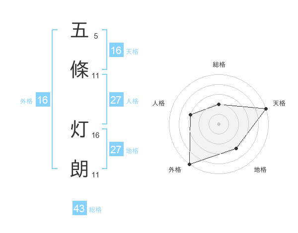 五條 灯朗さんの天格は16画の5点!