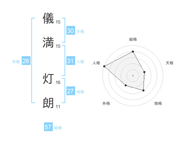 儀満 灯朗さんを姓名の画数から五運を鑑定