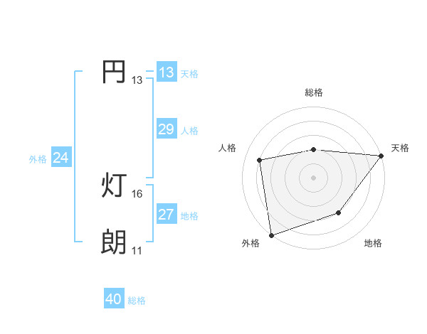 円 灯朗さんの総格は40画の2点!