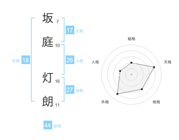 坂庭 灯朗さんを姓名の画数から五運を鑑定