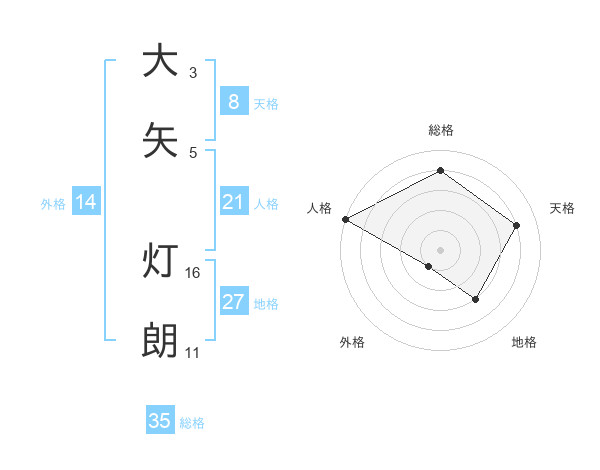 大矢 灯朗さんを姓名の画数から五運を鑑定