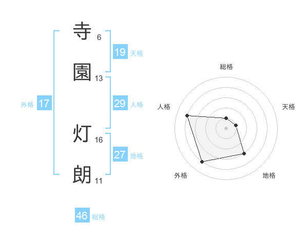 寺園 灯朗さんの総格は46画の1点!