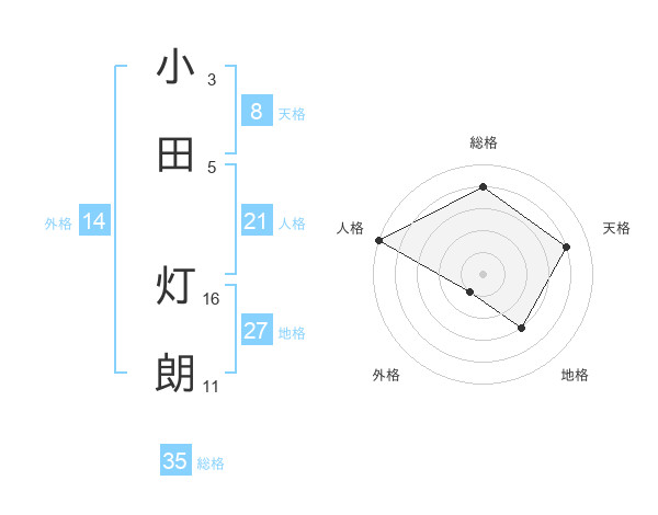 小田 灯朗さんの総格は35画の4点!