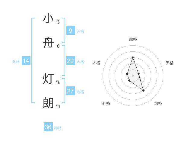 小舟 灯朗さんを姓名の画数から五運を鑑定