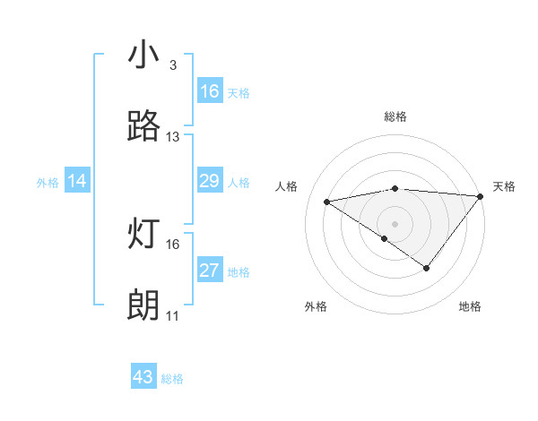 小路 灯朗さんの天格は16画の5点!
