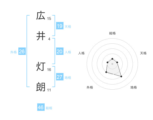 広井 灯朗さんの総格は46画の1点!