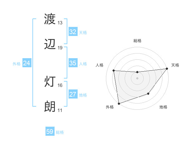 渡辺 灯朗さんの総格は59画の1点!
