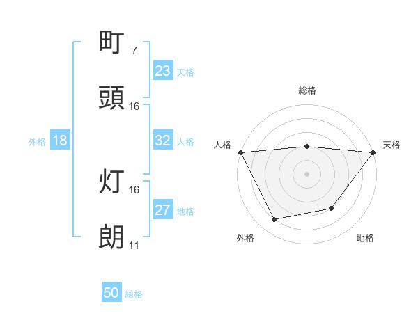 町頭 灯朗さんの総格は50画の2点!