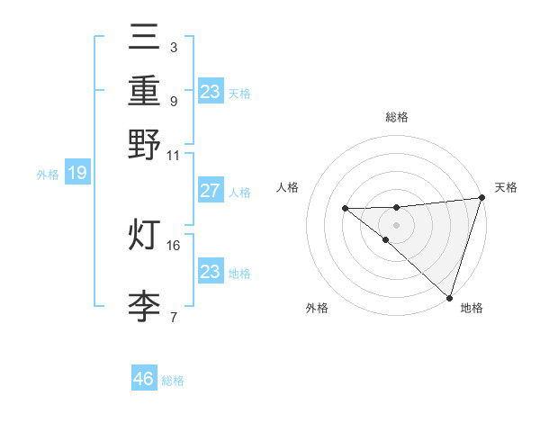 三重野 灯李さんを姓名の画数から五運を鑑定