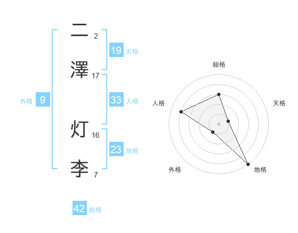 二澤 灯李さんの天格は19画の1点!