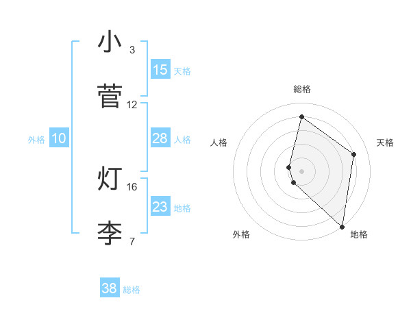 小菅 灯李さんの総格は38画の4点!
