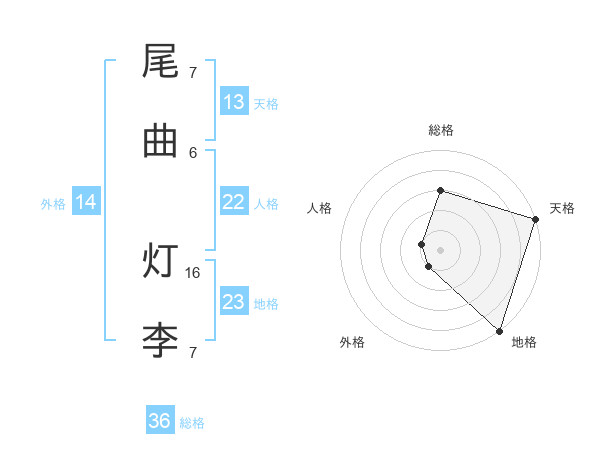 尾曲 灯李さんを姓名の画数から五運を鑑定