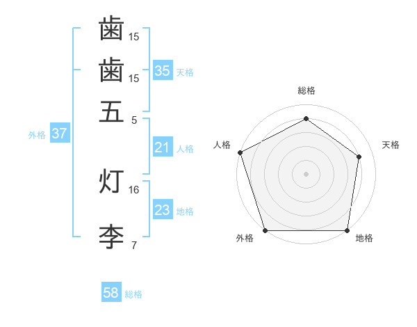 歯歯五 灯李さんを姓名の画数から五運を鑑定