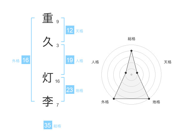 重久 灯李さんの総格は35画の4点