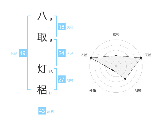 八取 灯梠さんの天格は16画の5点!