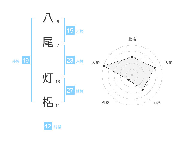 八尾 灯梠さんの地格は27画の3点!