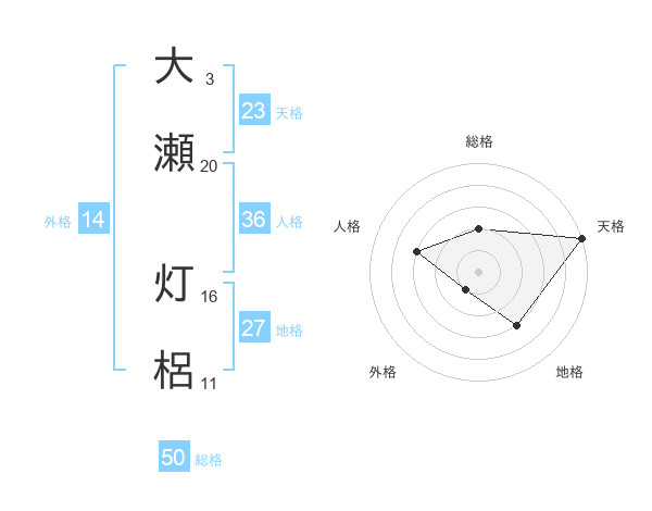大瀬 灯梠さんを姓名の画数から五運を鑑定