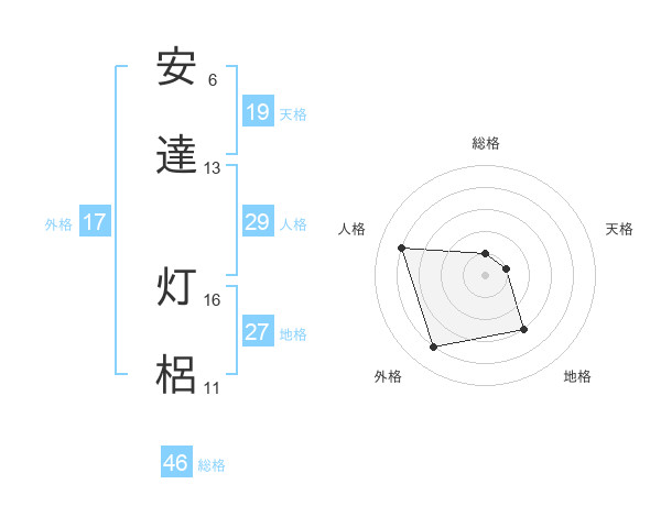 安達 灯梠さんを姓名の画数から五運を鑑定